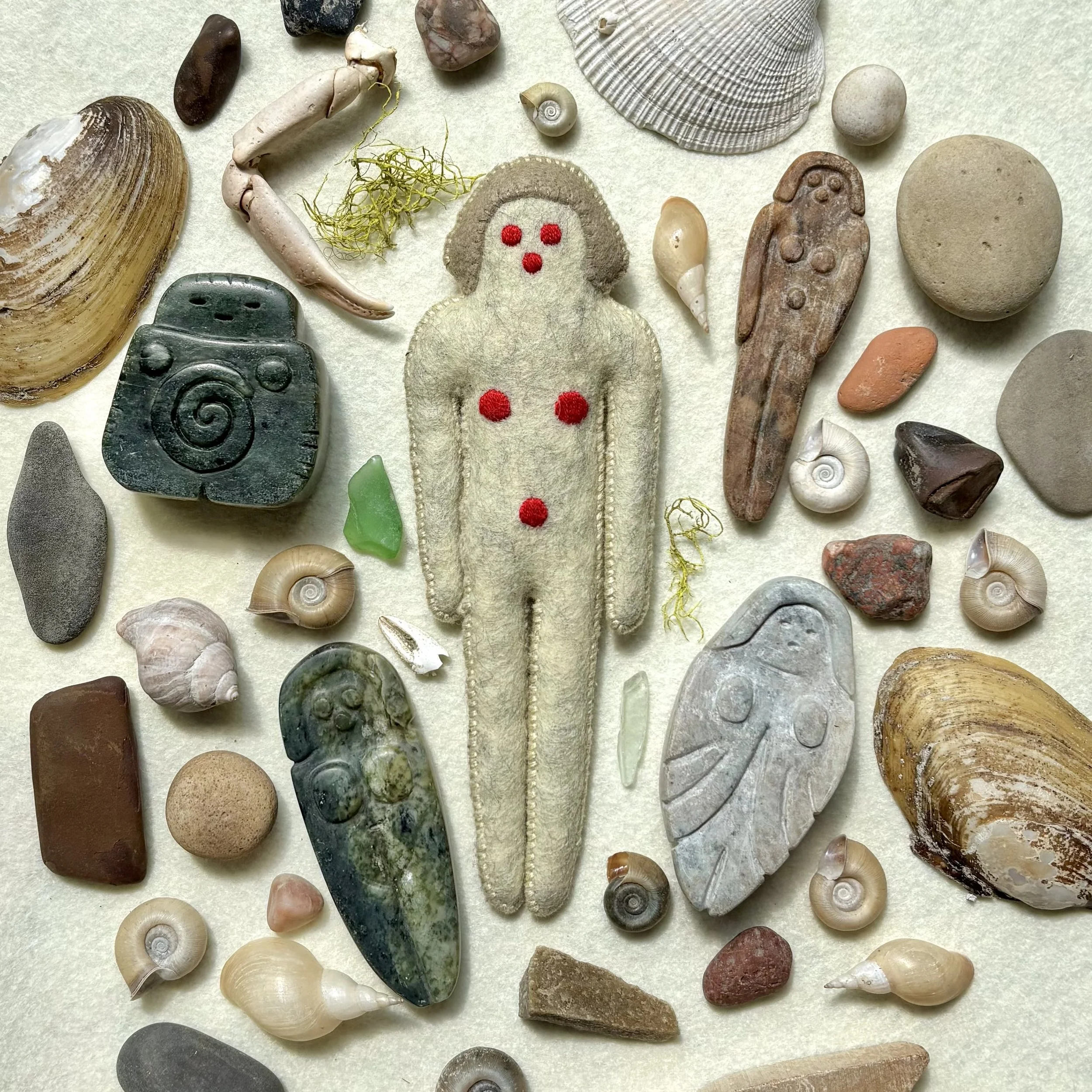 wool and wool blend felt, cotton embroidery thread, cotton stuffing